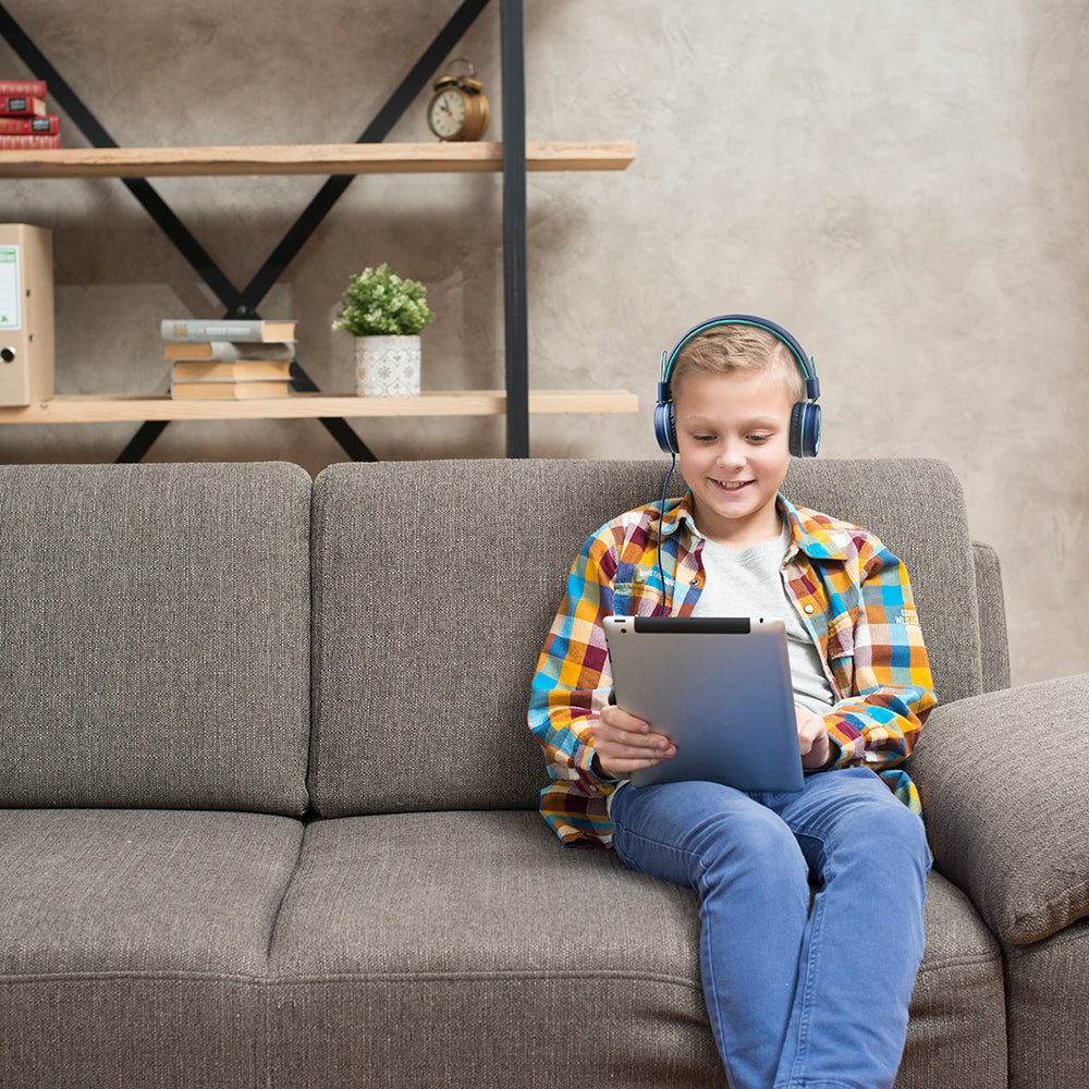 Of het nu gaat om gesprekken met familie en vrienden of deelname aan virtuele lessen, onze koptelefoon is uitgerust met een ingebouwde microfoon om heldere communicatie te waarborgen. Jouw kinderen kunnen met gemak praten en luisteren, zonder gedoe met aparte apparaten.