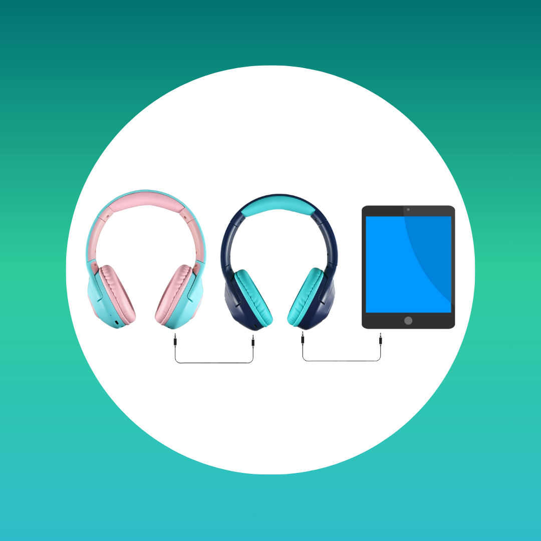 All our kids' headphones are designed and produced with a strong focus on quality, durability, and safety. Fully charged, the Unbreakable lasts for 45 hours. The headphones display the battery level on your tablet/smartphone and can also be used wired. Dual sharing is also included, so kids can watch movies on the tablet together on the couch.